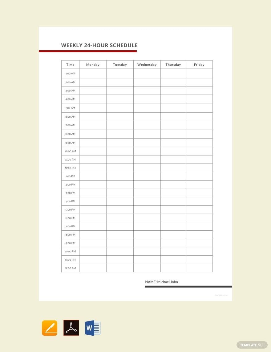 A 24-hour daily schedule template breaks down your day into hour-by-hour increments, allowing you to allocate specific time blocks for different activities. This type of schedule is especially useful for individuals with busy or variable schedules, as it provides a detailed overview of how your day will unfold.