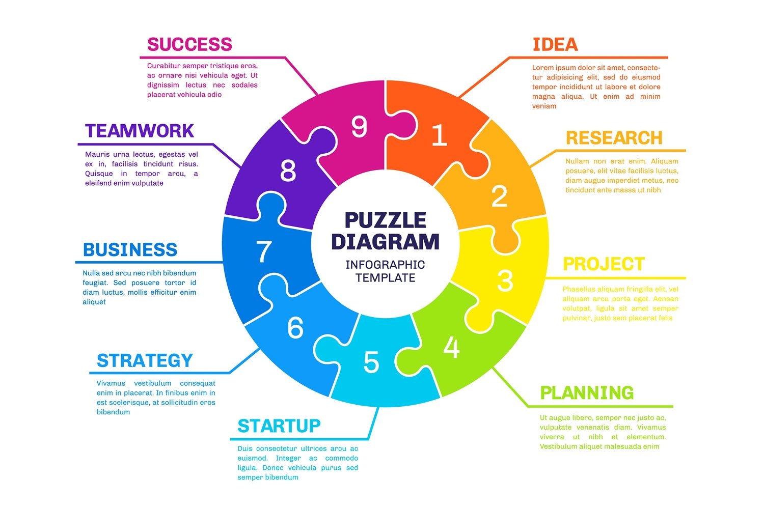 With this template, you can break down complex ideas into manageable pieces that fit together seamlessly. Whether you are presenting a business strategy, a project timeline, or a marketing plan, the 7 piece puzzle template can help you organize your information in a clear and logical way.