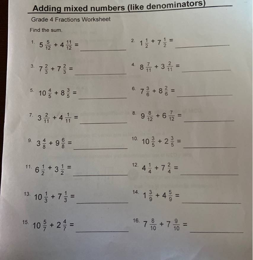 Moreover, adding mixed numbers worksheets can be used as a form of assessment to gauge students’ understanding of the concept. Teachers can use these worksheets to monitor students’ progress and identify areas where additional support may be needed. This information can help inform instructional decisions and tailor lessons to meet the specific needs of students.