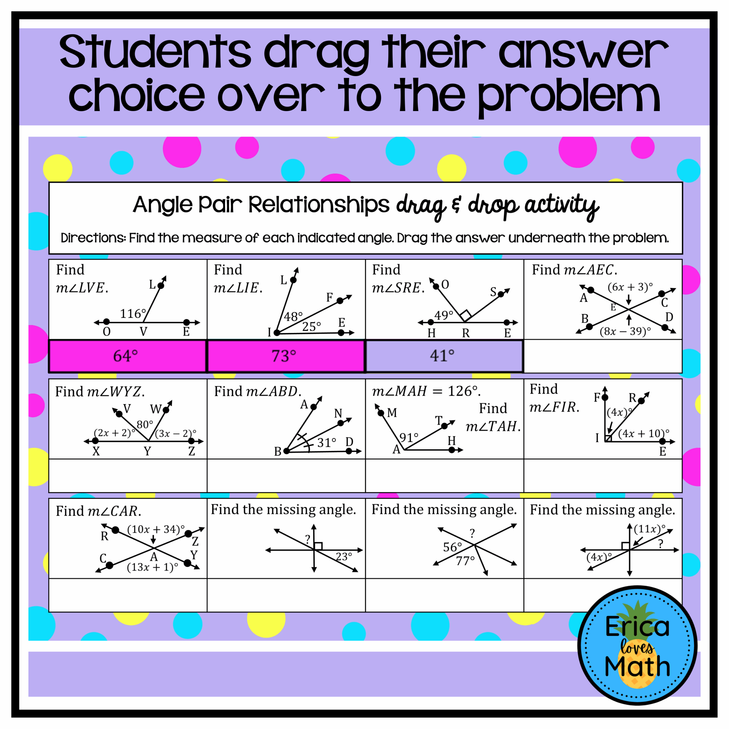 Angles are an important concept in geometry, and understanding the relationships between different angles is crucial for solving problems involving shapes and measurements. An angle relationships worksheet is a useful tool for students to practice identifying and working with various types of angles.