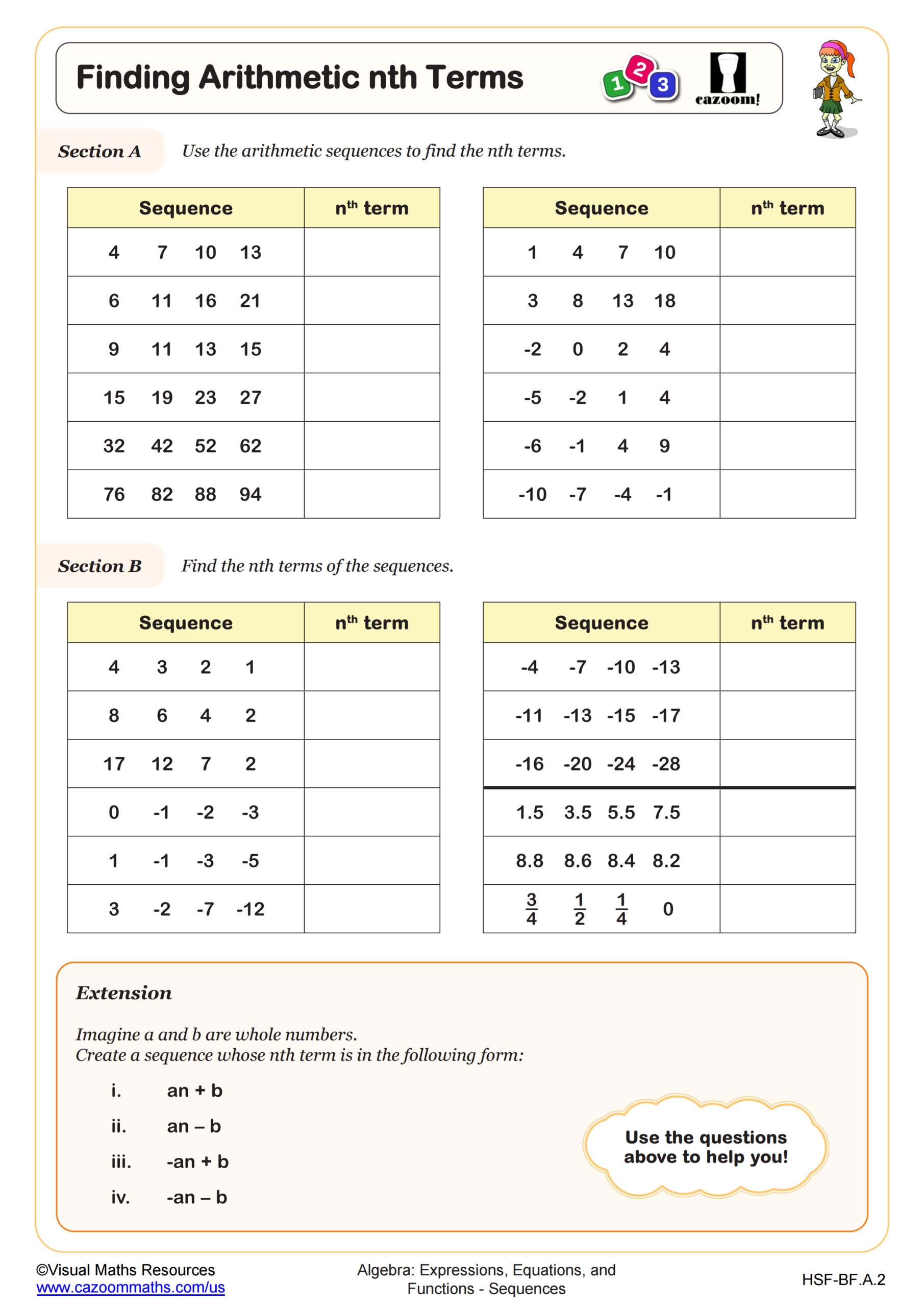 Arithmetic sequence worksheets typically consist of a series of questions that require students to identify the common difference between terms, find missing terms, and determine the nth term of a sequence. These worksheets can vary in difficulty, catering to students at different levels of understanding.