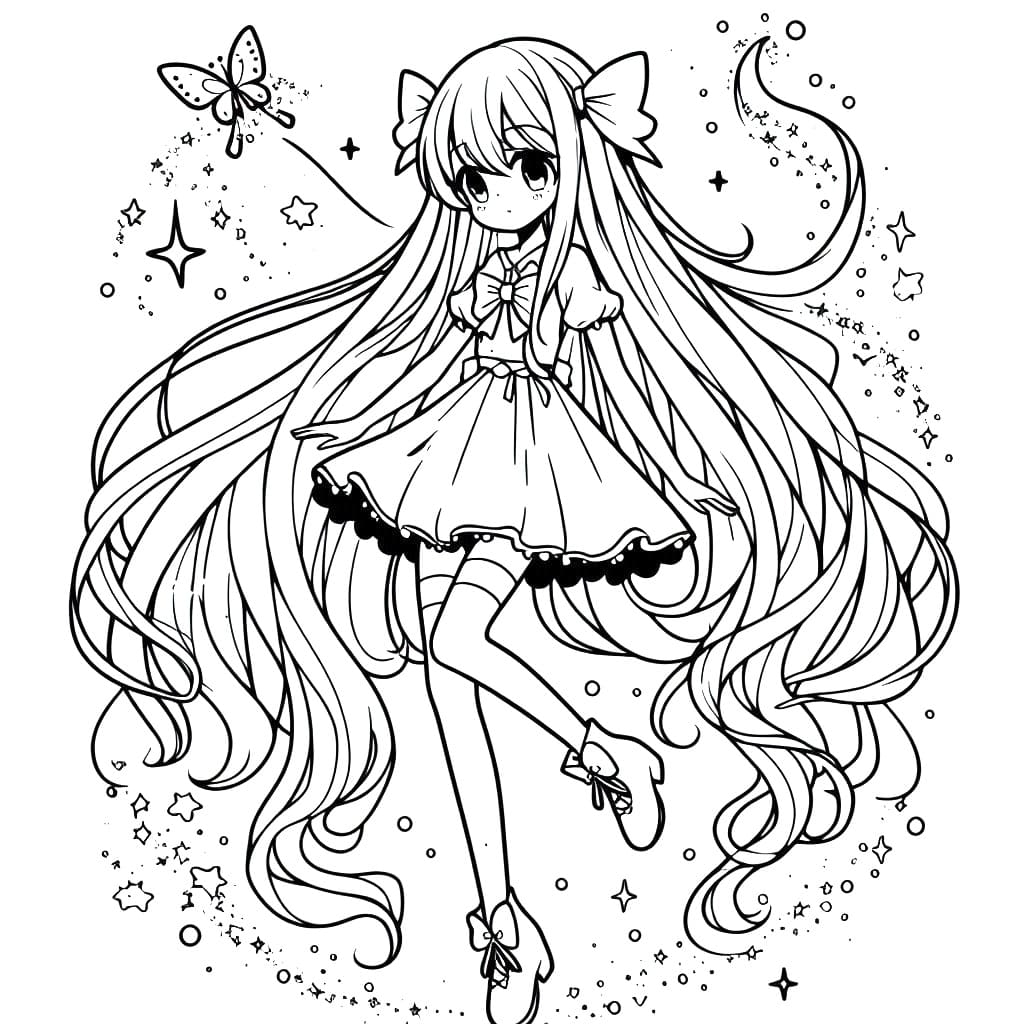 Beautiful Anime Long Hair Anime Girl Coloring Pages