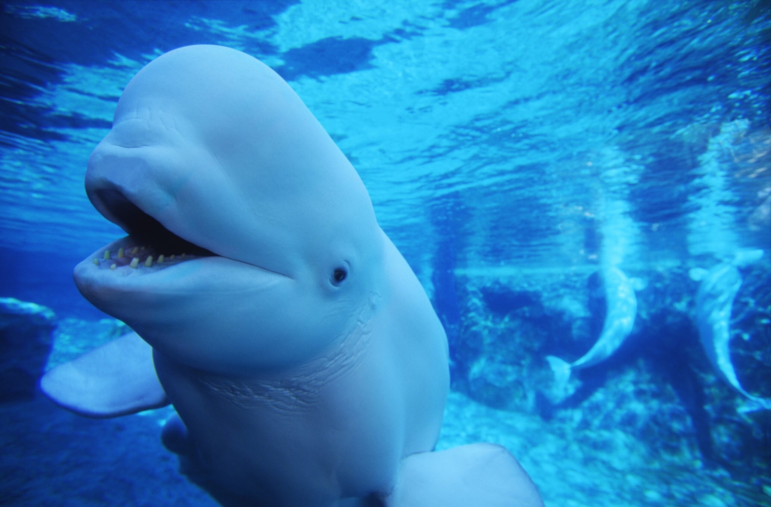 1. Beluga Whale Swimming: This picture shows a beluga whale gracefully gliding through the water. You can use shades of blue and white to bring this majestic creature to life.