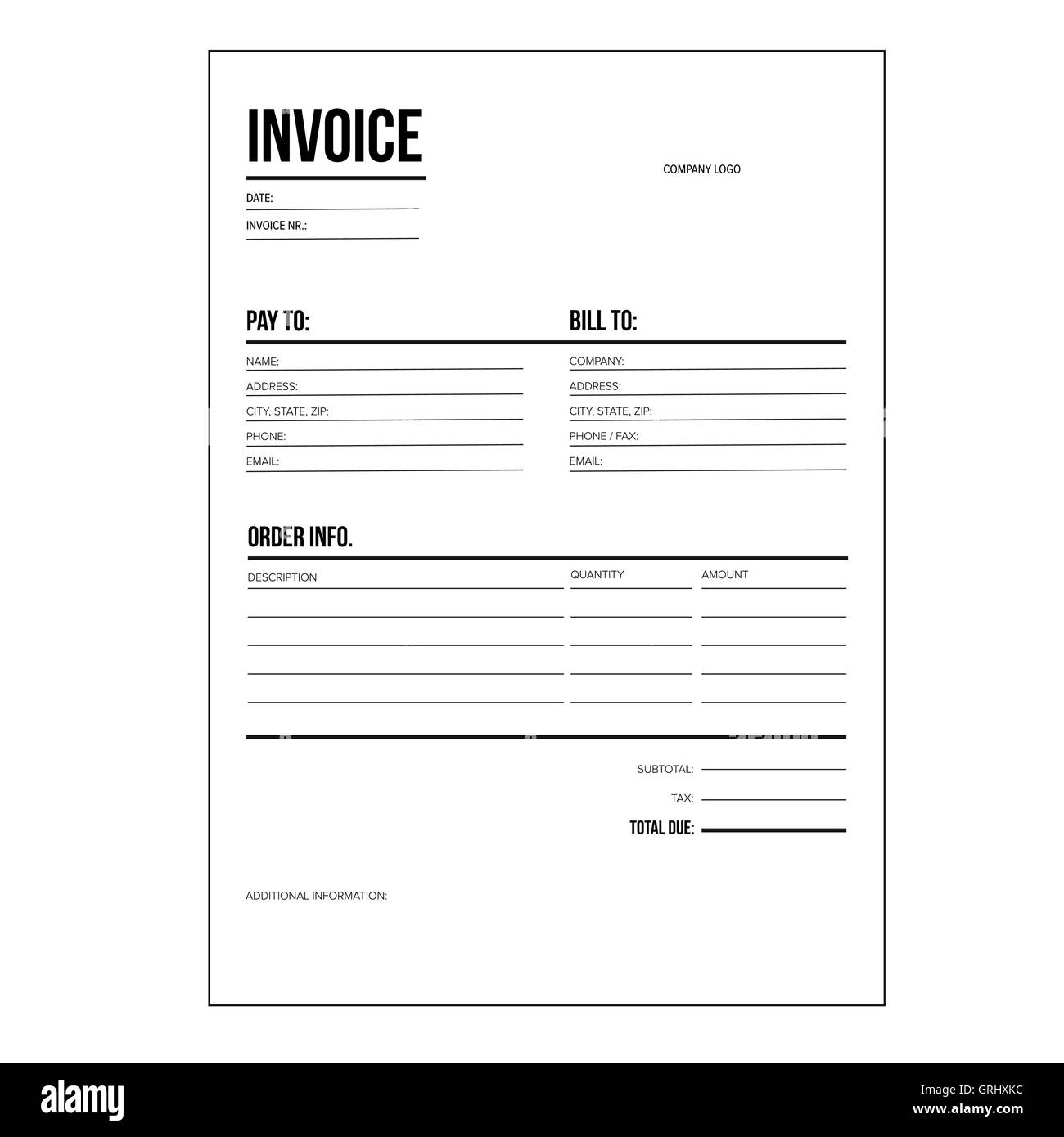 Minimalist Business Invoice Black And White Stock Photos U0026 Images Alamy