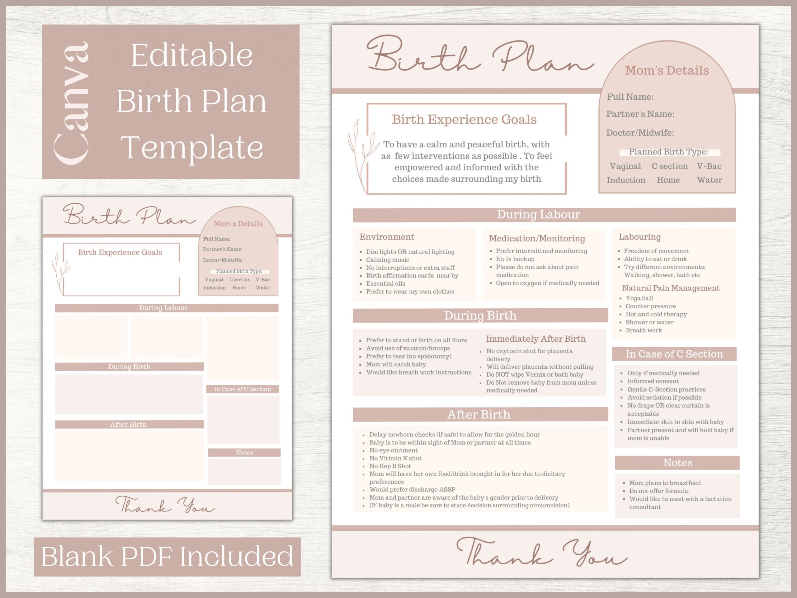 Our birth plan template covers various aspects of labor and delivery, including pain management options, labor positions, who will be present during the birth, and what interventions you are comfortable with. By filling out this template, you can clearly outline your preferences and ensure that your healthcare team is aware of them.