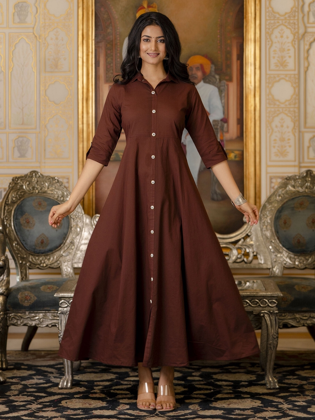 Brown color dress has always been a classic and timeless choice in the fashion world. It exudes sophistication and elegance, making it a versatile option for various occasions. Whether you are attending a formal event or a casual gathering, a brown dress can make you stand out in a crowd.