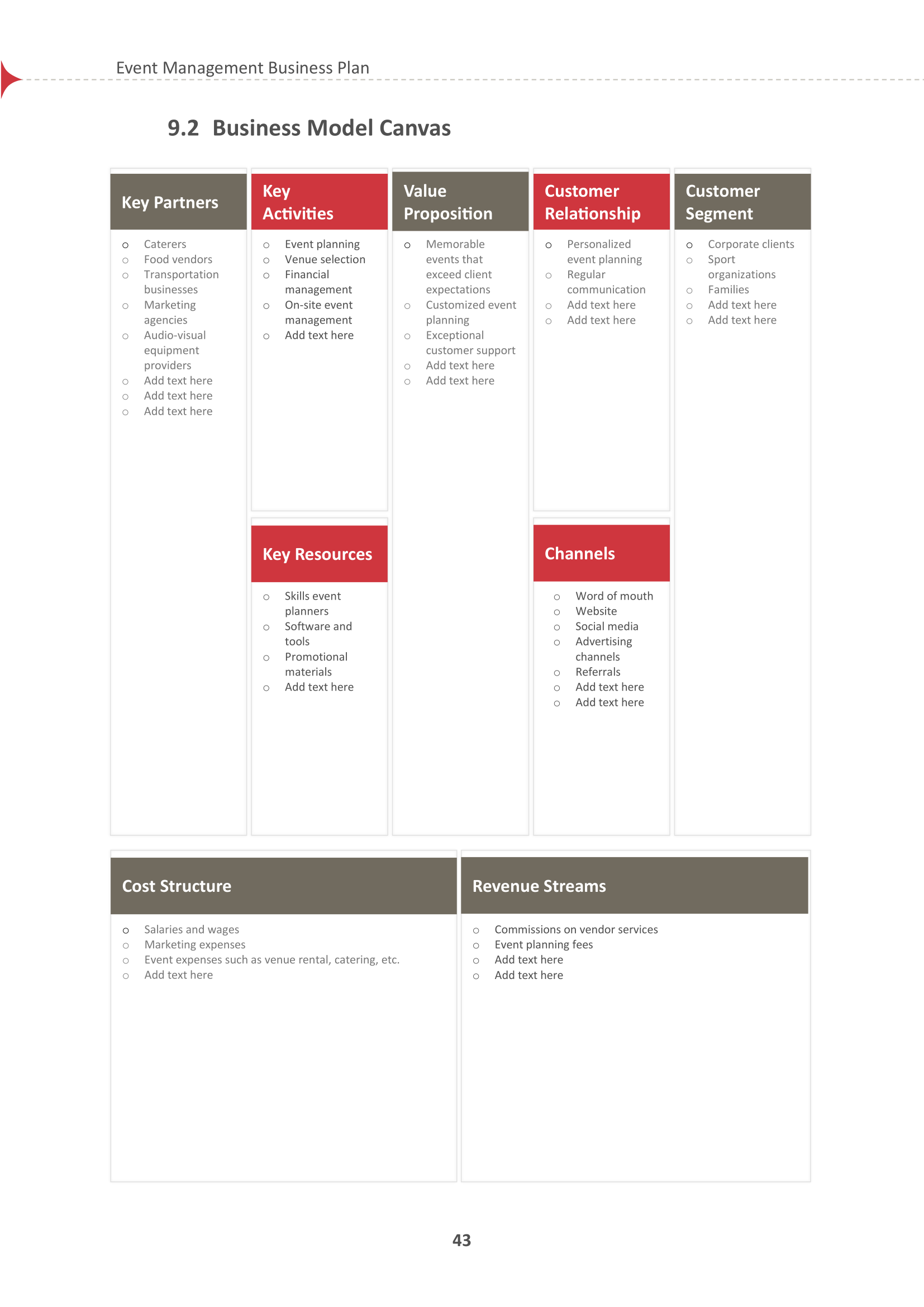 Business Plan Template for Events Company