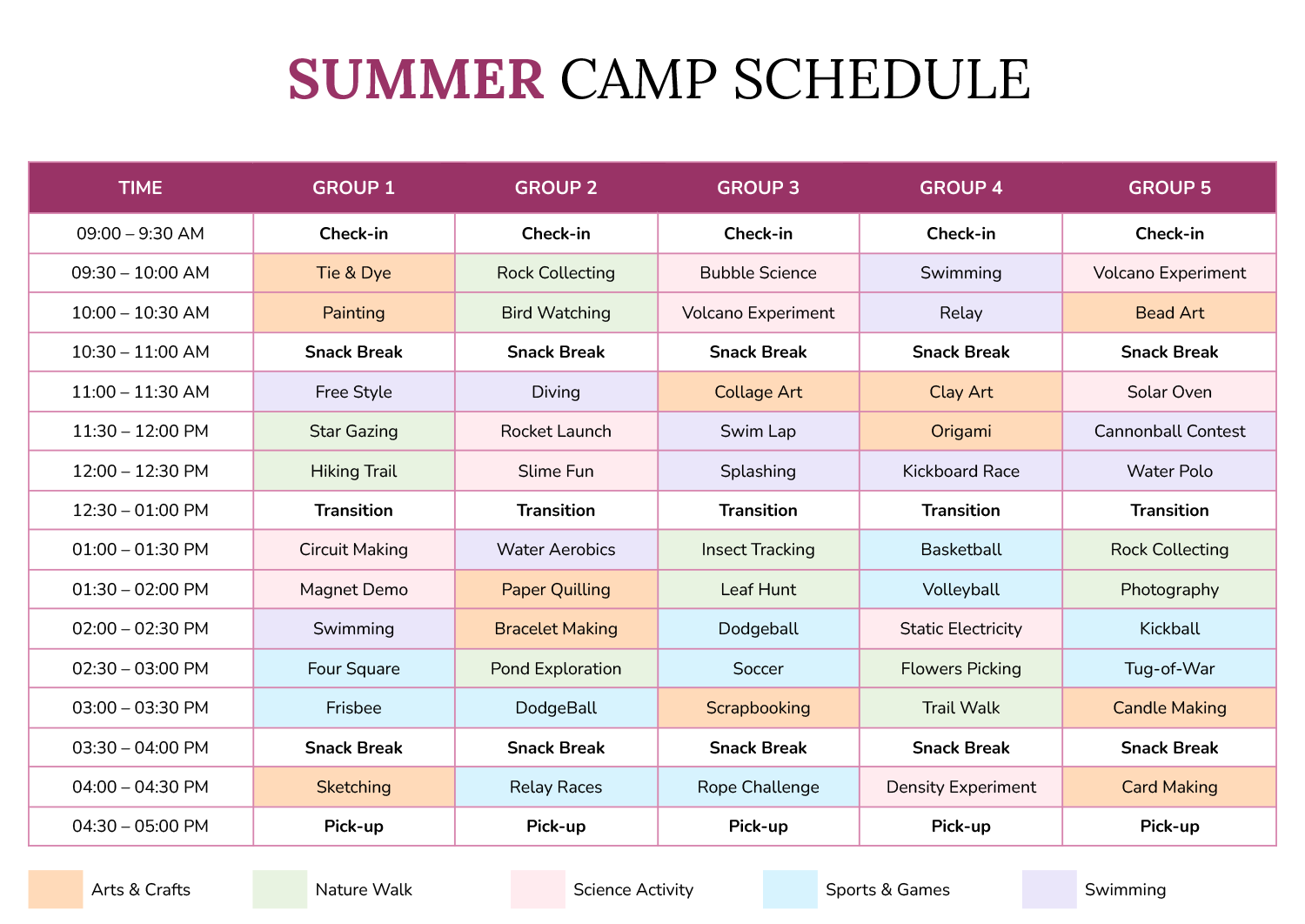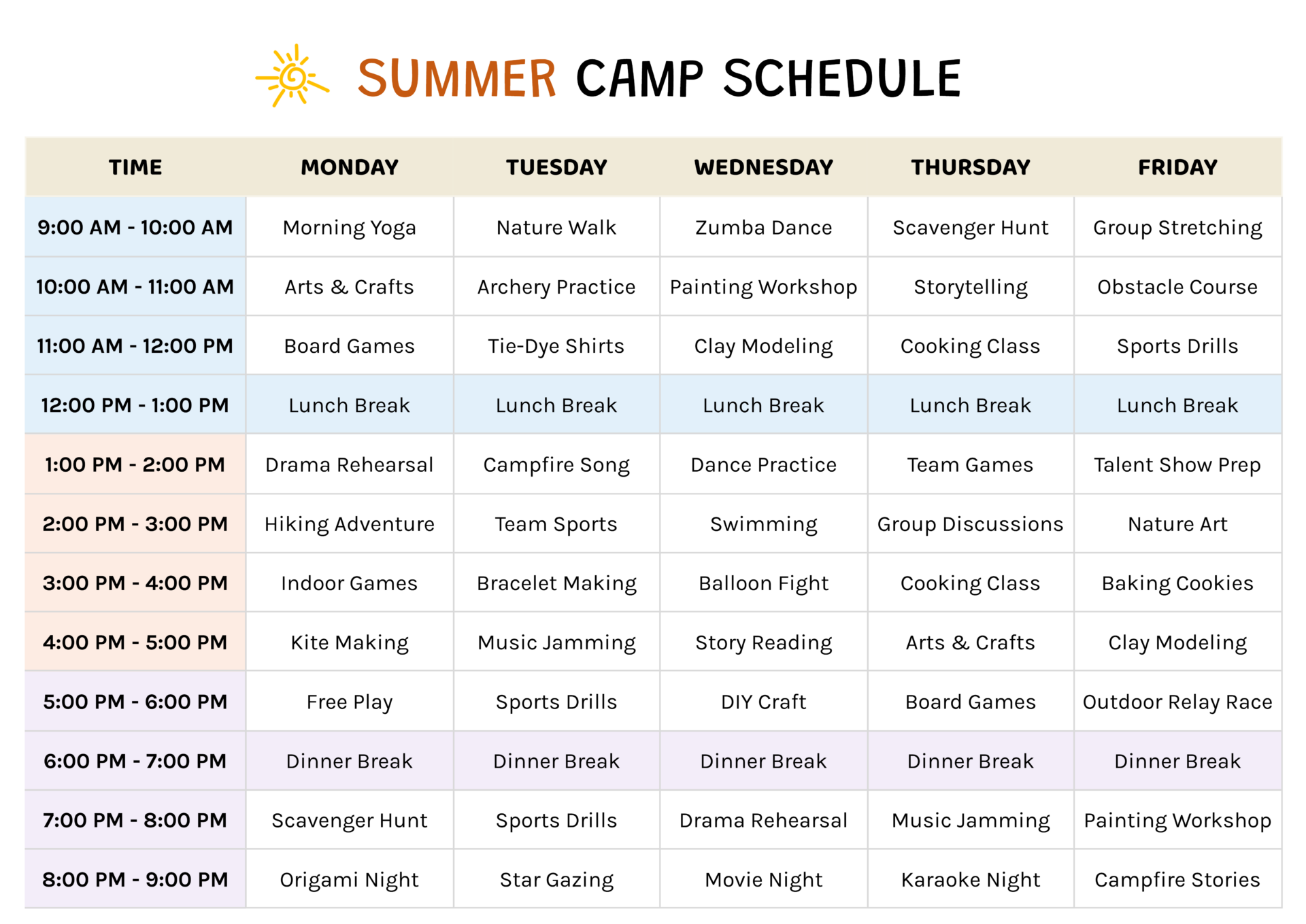 Camp Schedule Template