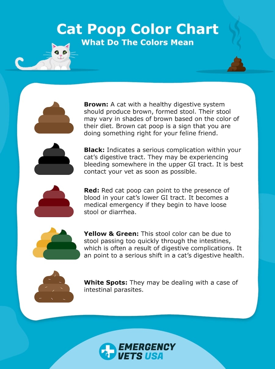 In conclusion, keeping an eye on your cat’s feces color can help you monitor their health and catch any potential issues early on. By familiarizing yourself with the cat feces color chart and knowing what each color may indicate, you can provide the best care for your furry friend.