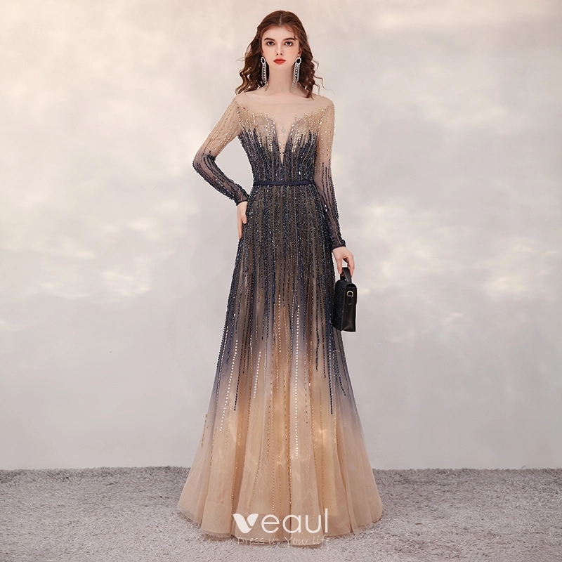 High end Navy Blue Gradient Color Champagne Evening Dresses 2020 A