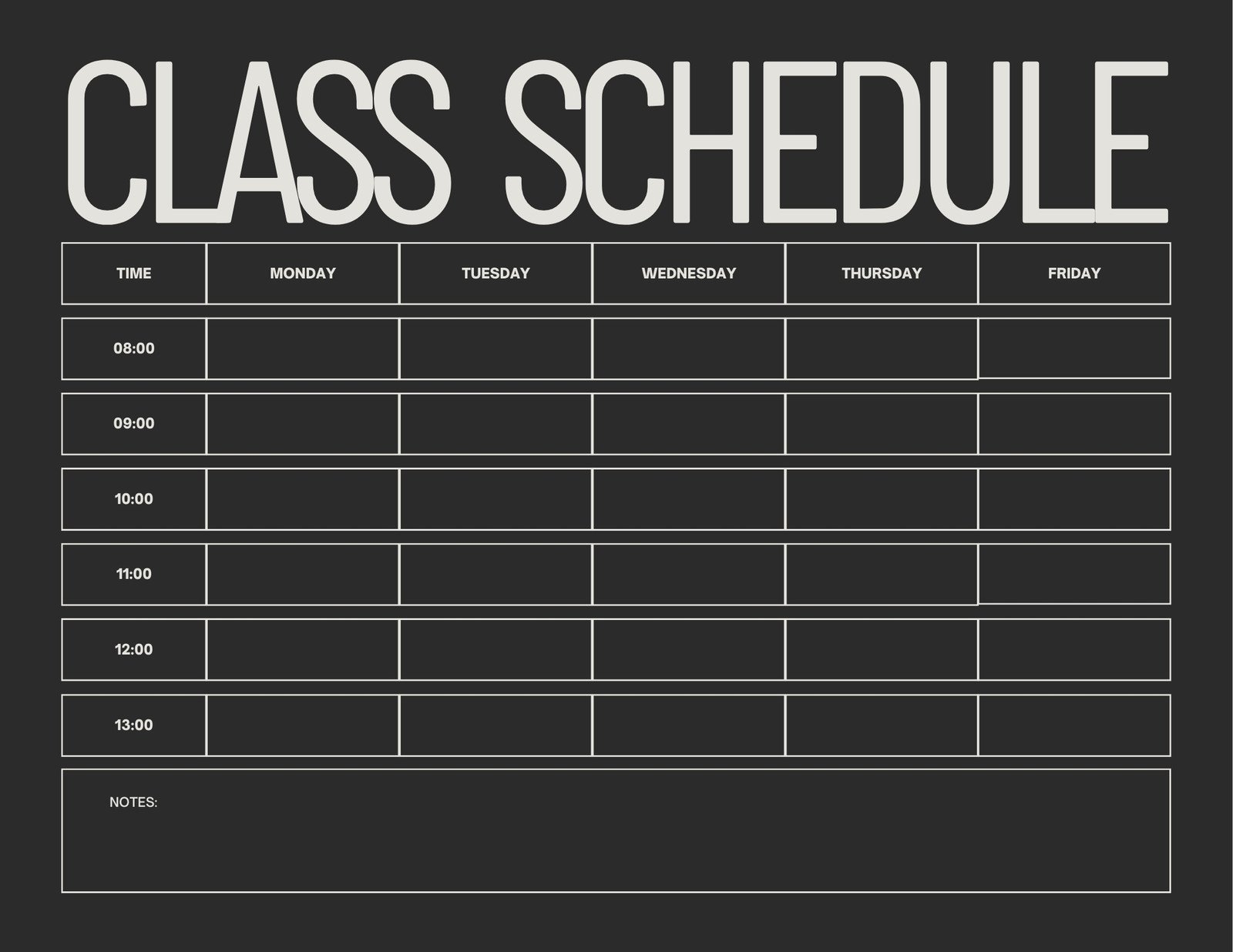 When creating a college class schedule template, it’s important to include all the necessary information to help you stay organized. Start by listing all your classes, including the course name, professor, time, and location. You can also include any additional information such as office hours, contact information, and important dates.