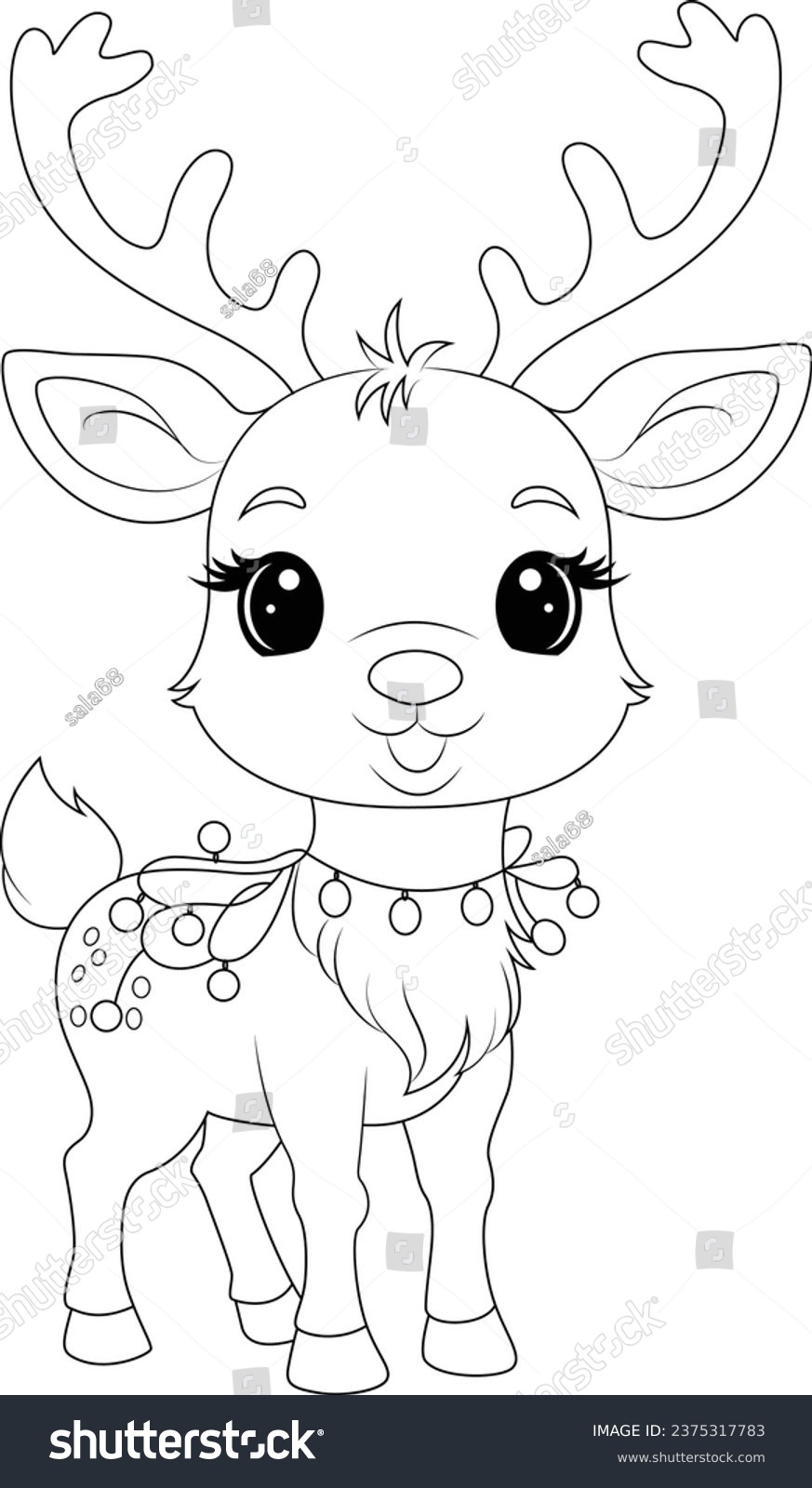 Coloring Page Cute Reindeer Tangled Christmas Stock Vector Royalty Free 2375317783 Shutterstock