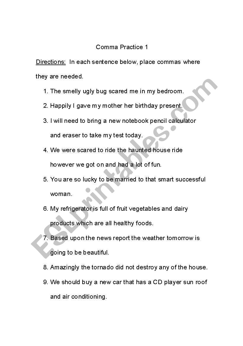 Comma Practice Worksheet