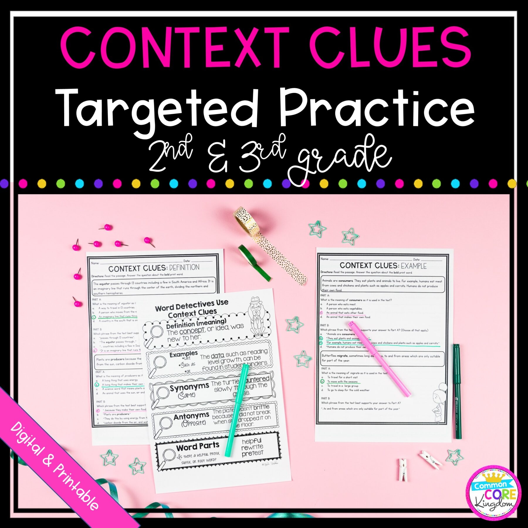 These worksheets are designed to provide students with opportunities to identify context clues in a sentence or passage and use them to determine the meaning of a word. By practicing with these worksheets, students can develop their ability to infer the meaning of unknown words based on the surrounding text.