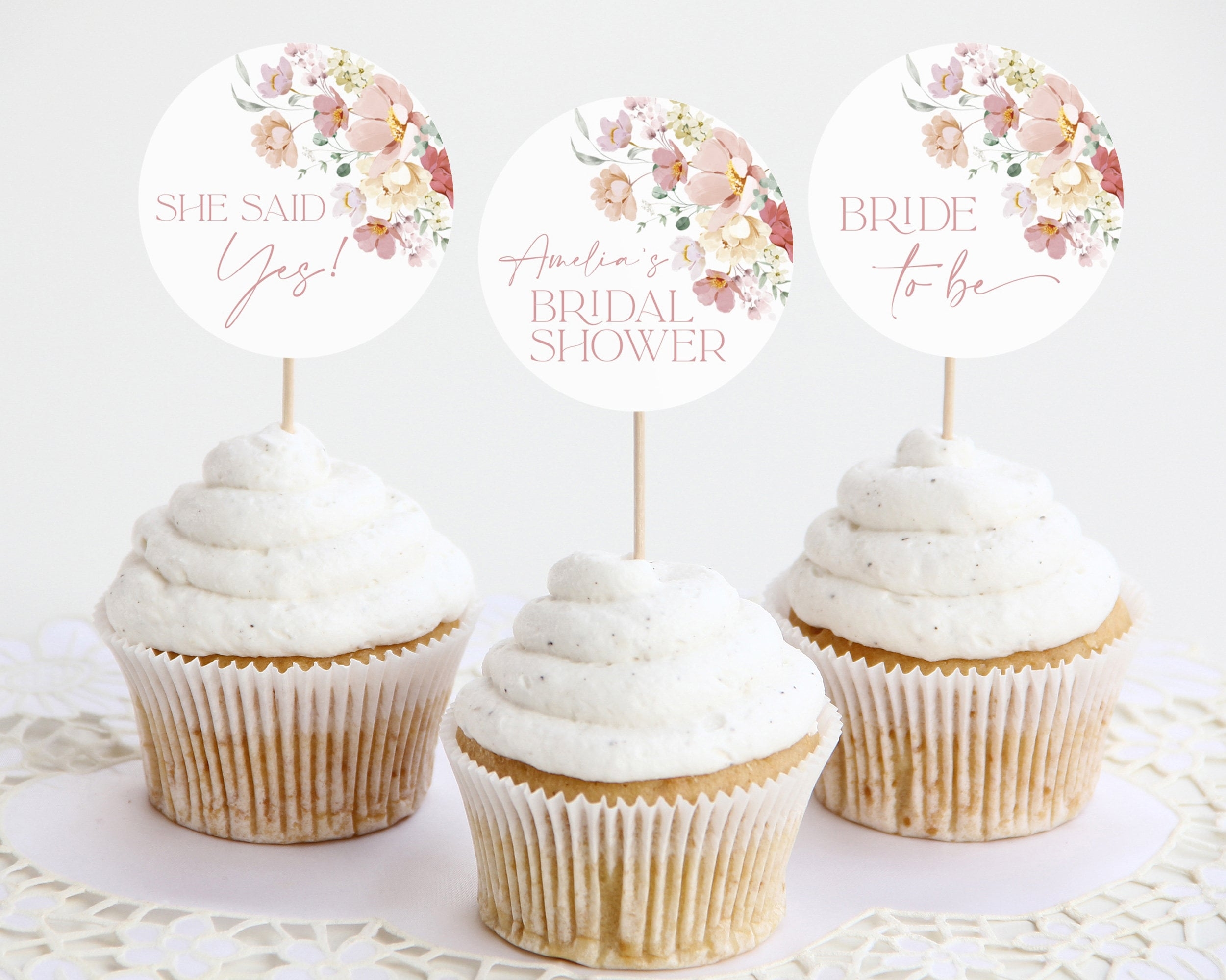 Editable Bridal Shower Cupcake Toppers Blush Floral Bridal Shower
