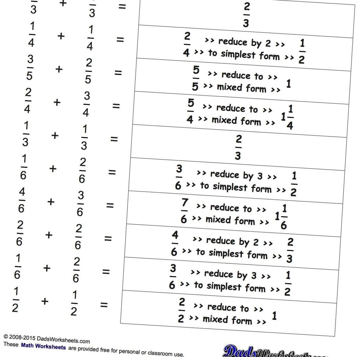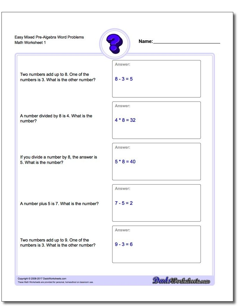 DadsWorksheets Free Printable Math Worksheets