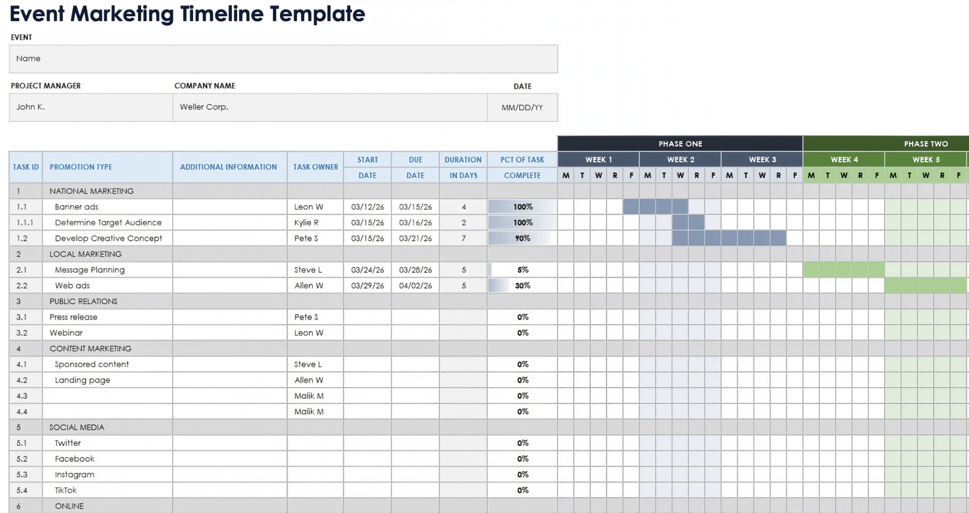 A day of event timeline template typically includes sections for different time intervals, such as morning, afternoon, and evening. It also allows you to assign tasks to specific team members or volunteers, ensuring that everyone knows their responsibilities and deadlines.