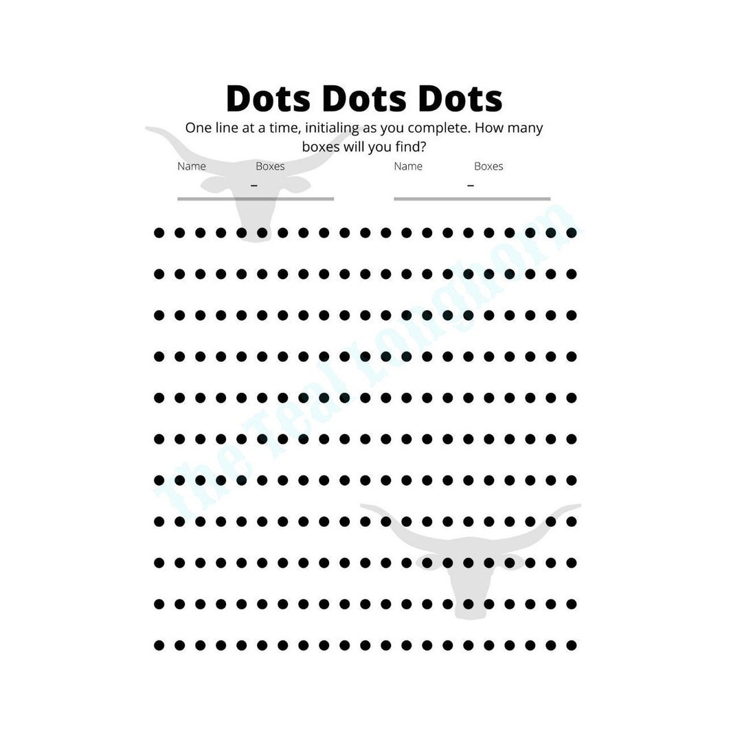 To play dots printable game, simply print out a dot grid and grab a pen or pencil. Players take turns connecting two adjacent dots either horizontally or vertically. When a player completes a square, they get to put their initial in it and take another turn. The game continues until all dots are connected and the player with the most squares wins.