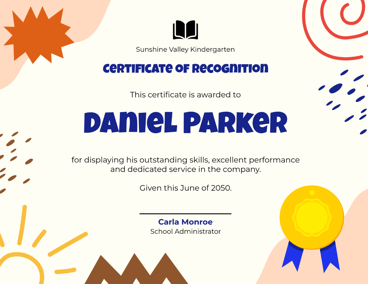 Download and Print editable free printable kindergarten certificate templates Listed below