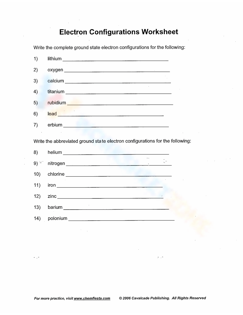Electron Configurations Worksheet