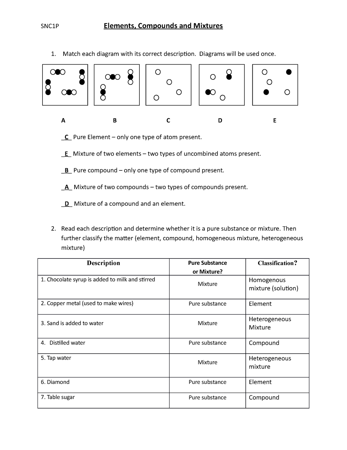 In conclusion, an element compound mixture worksheet is a valuable resource for students to practice identifying and categorizing different types of substances in chemistry. By working through examples of elements, compounds, and mixtures, students can solidify their understanding of these fundamental concepts and improve their overall comprehension of the subject. These worksheets provide a hands-on approach to learning that can benefit students at all levels of proficiency in chemistry.