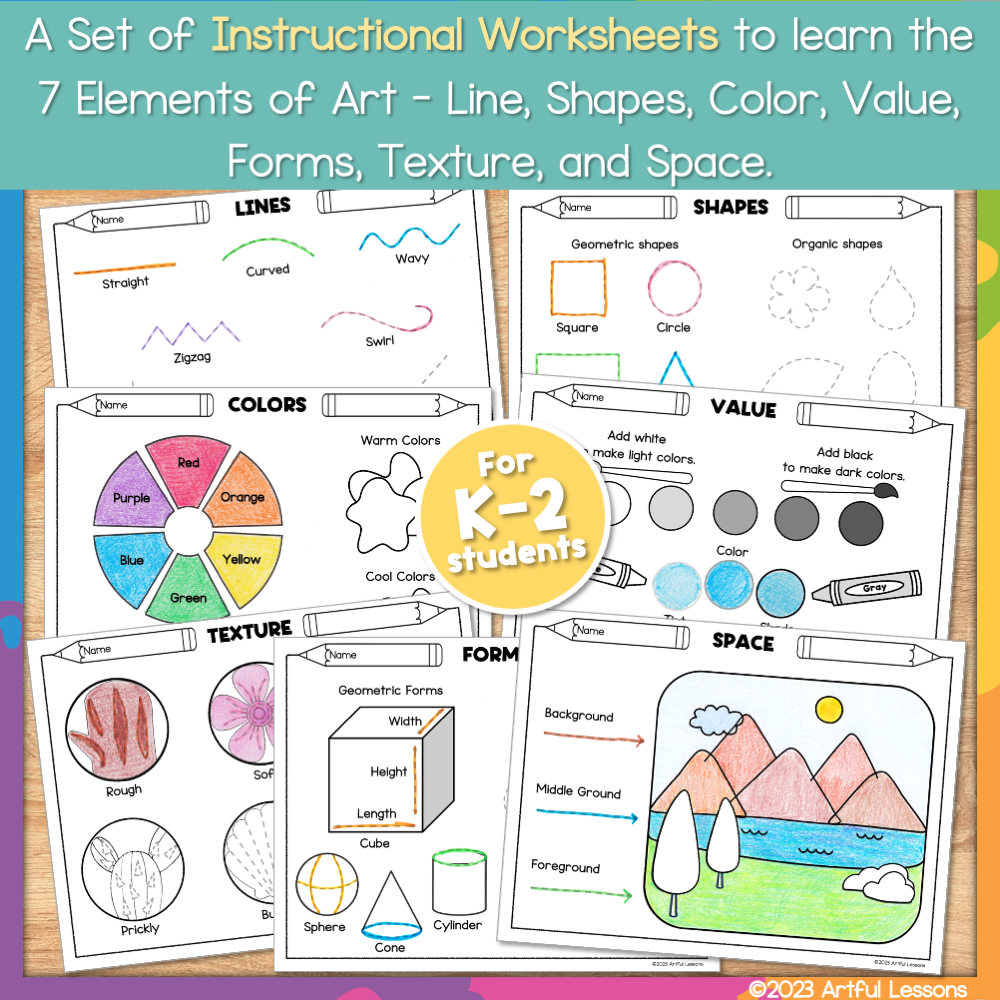 ELEMENTS Of ART Lessons Elementary Art Curriculum Art Activities Line Shape Color Value Form Texture Space Classful