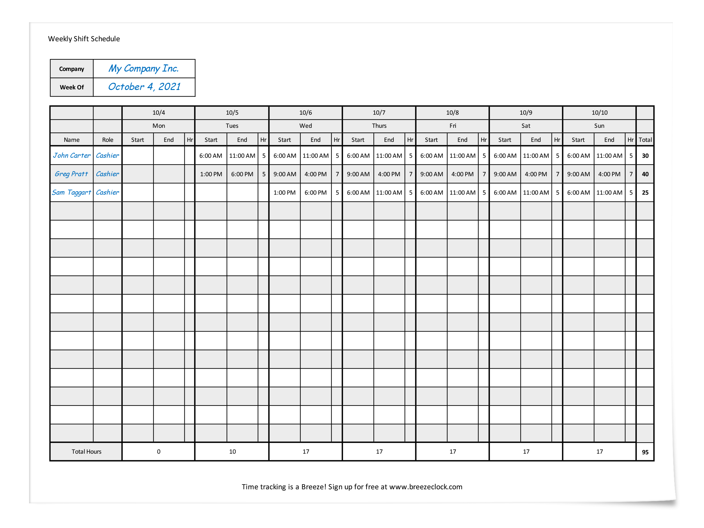 One way to streamline this process is by using an employee weekly schedule template. This template provides a framework for organizing tasks, shifts, and deadlines in a clear and concise manner. It can be easily customized to fit the specific needs of your business and can save time and effort in creating schedules each week.