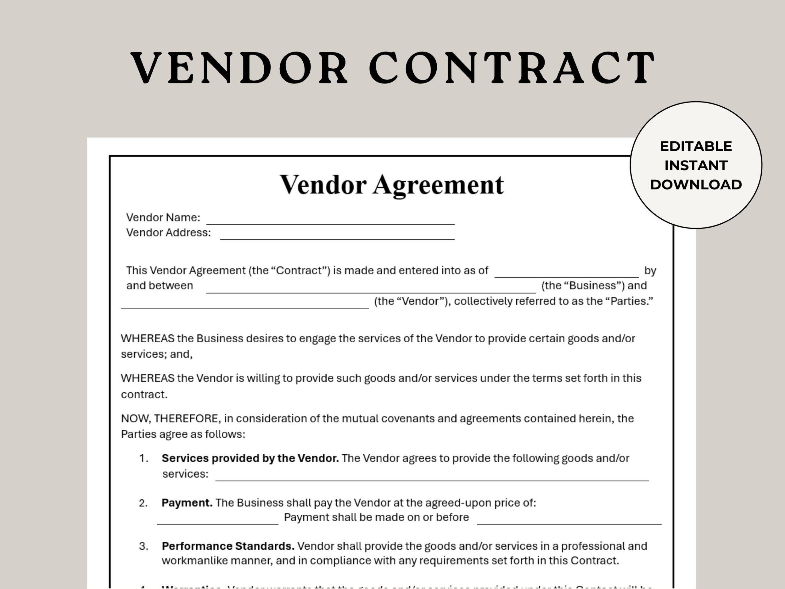 Whether you are organizing a wedding, corporate event, or festival, having a well-drafted vendor agreement is essential for protecting your interests and ensuring a smooth event execution. This document will help you outline the responsibilities of each vendor, payment terms, cancellation policies, and other important details that are crucial for a successful partnership.