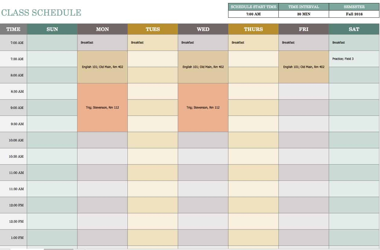 Excel Week Schedule Template