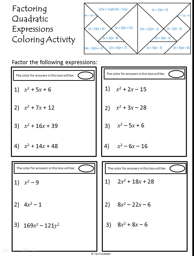 Moreover, a factoring expressions worksheet can serve as a valuable assessment tool for teachers. By analyzing students’ responses to the problems on the worksheet, teachers can gauge their understanding of factoring concepts and identify areas that may require further instruction or review.