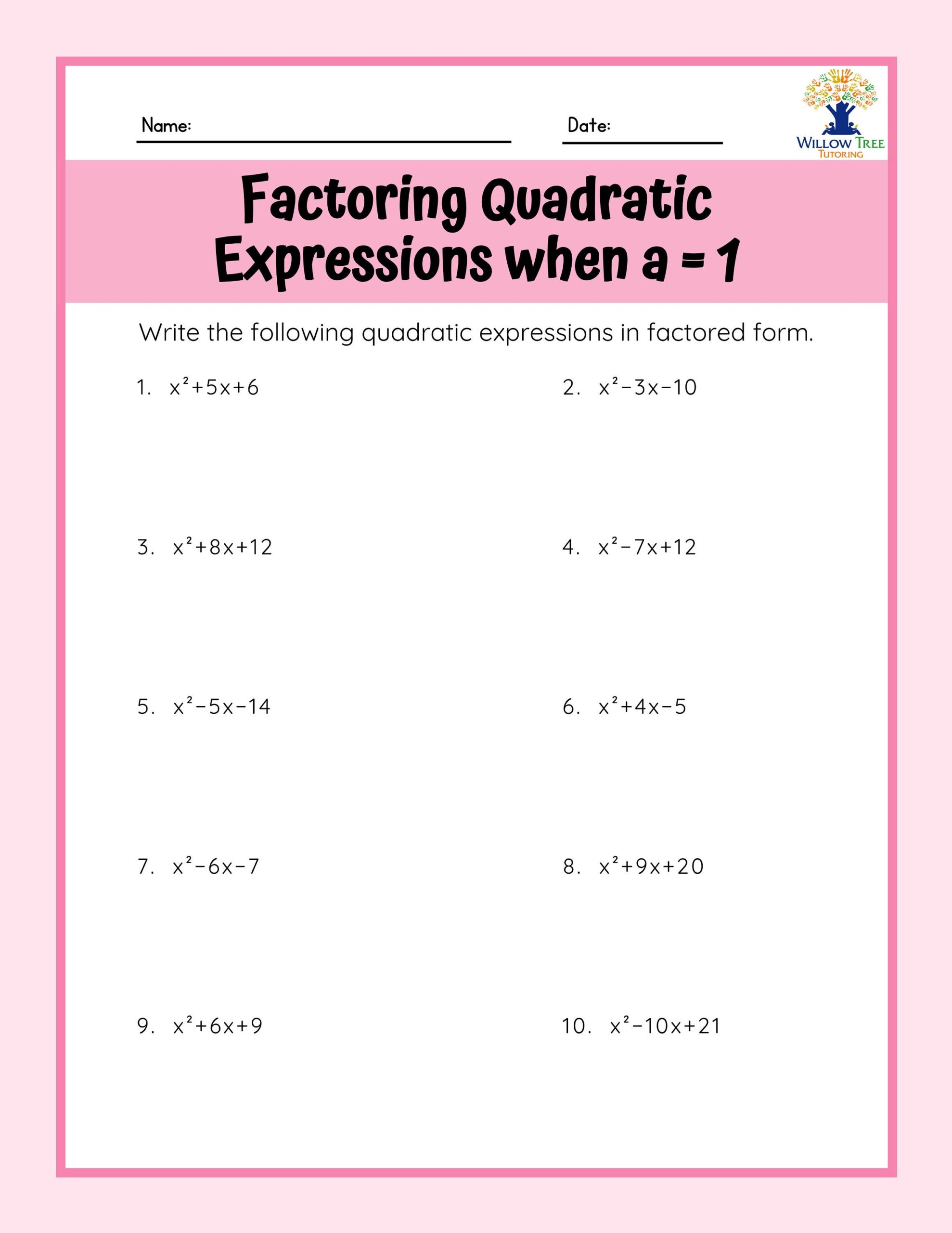 One of the main benefits of using a factoring expressions worksheet is that it provides students with a structured way to practice and improve their factoring skills. The worksheet typically contains a range of problems that increase in difficulty, allowing students to gradually build their proficiency in factoring expressions.