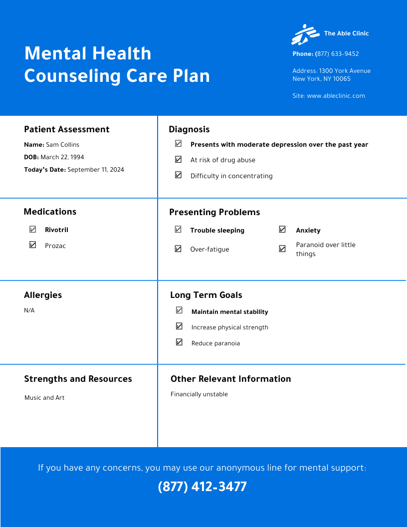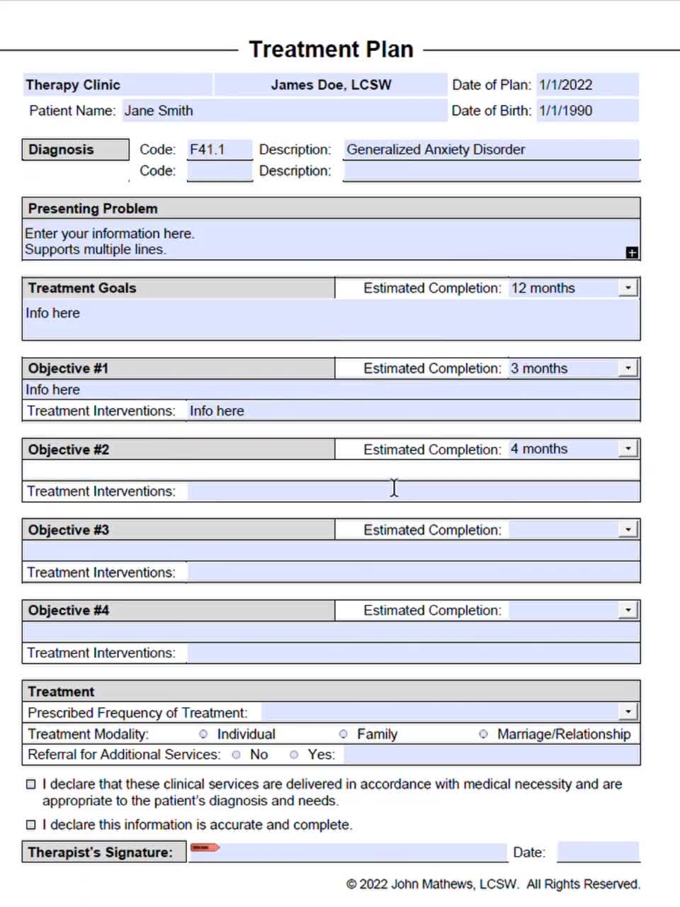 Another advantage of using a template is that it can serve as a helpful reference tool throughout the counseling process. Counselors can refer back to the treatment plan to remind themselves of the goals that have been set, the strategies that have been identified, and the progress that has been made. This can help keep the counseling sessions focused and on track, and can also provide a sense of continuity and consistency for both the counselor and the client.