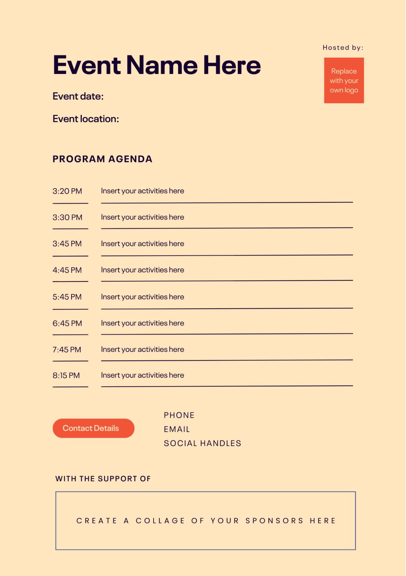 Don’t let the stress of planning an event overwhelm you. Use our free event program template to streamline the process and ensure that your event is a success. Download the template today and start planning your next event with ease!