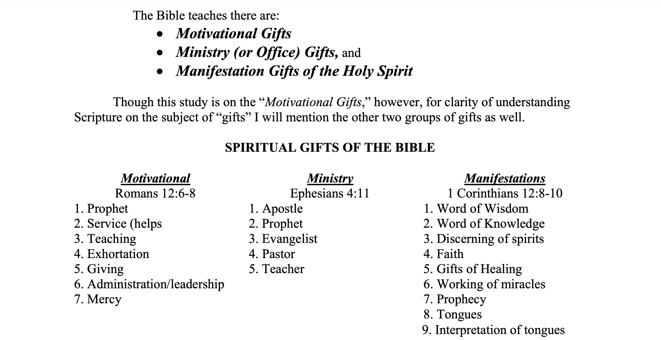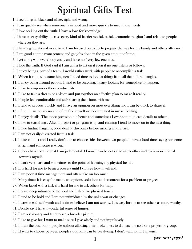 Free Printable Spiritual Gifts Test