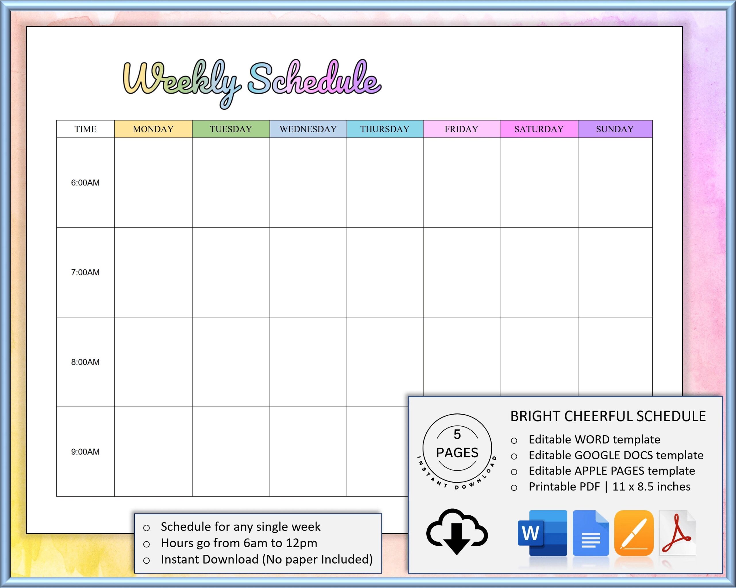 Are you someone who struggles to keep track of your weekly tasks and appointments? Do you find yourself constantly forgetting important deadlines or meetings? If so, Google Docs Weekly Schedule Template is here to save the day! With this handy tool, you can easily create a detailed schedule that will help you stay on top of your commitments and manage your time effectively.