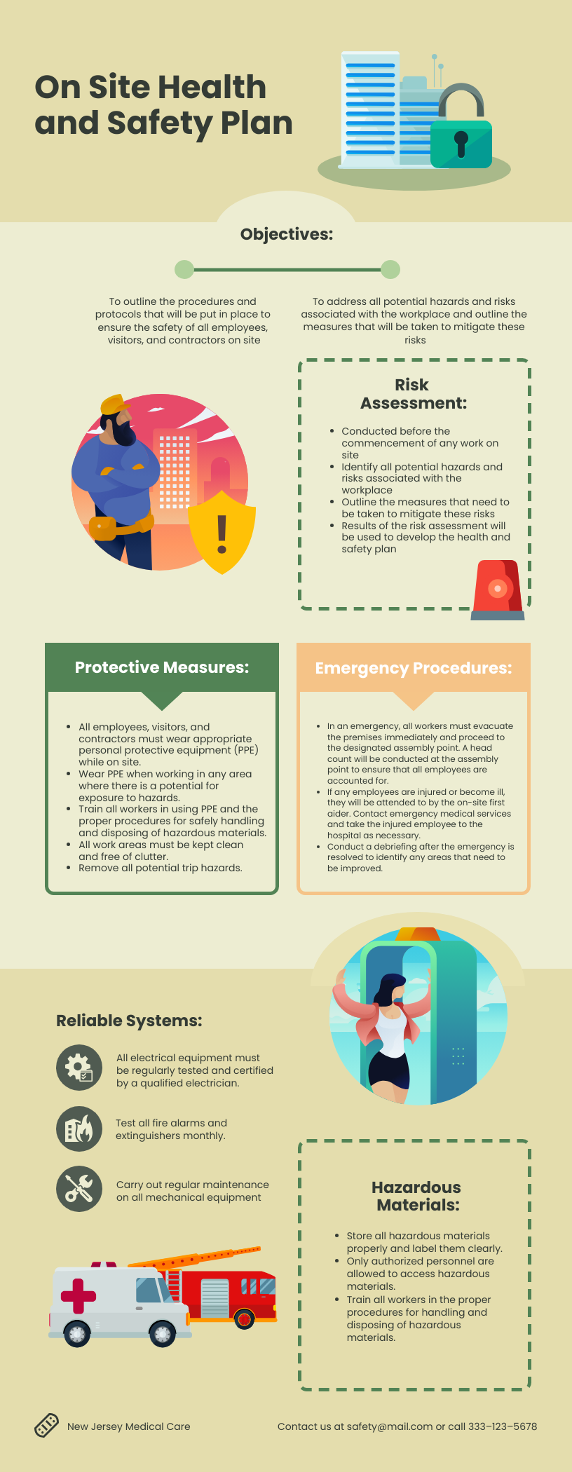 When creating a health and safety plan template, it is important to include the following components: