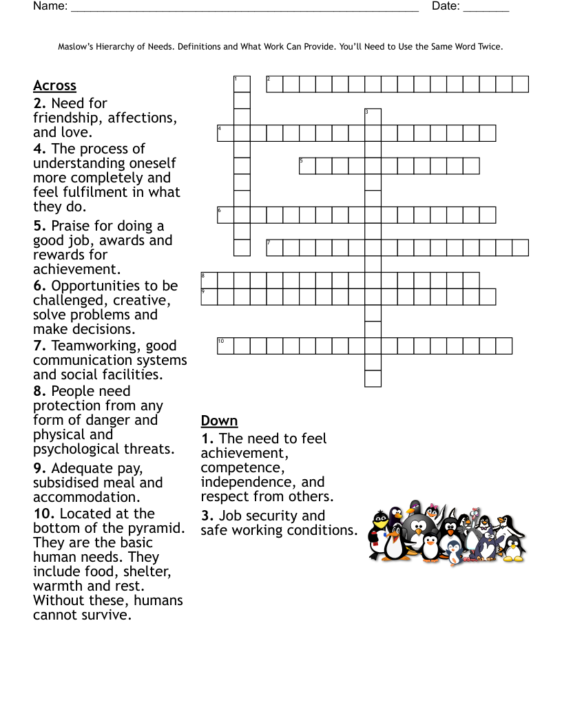 Hierarchy of Needs Worksheet