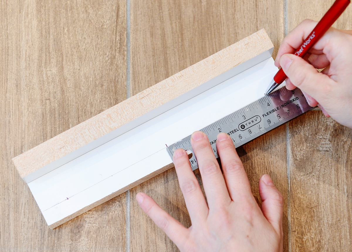 2. Use a pencil to mark where you want the center of each drawer pull to be on your template. This will help guide you when drilling the holes for the screws.
