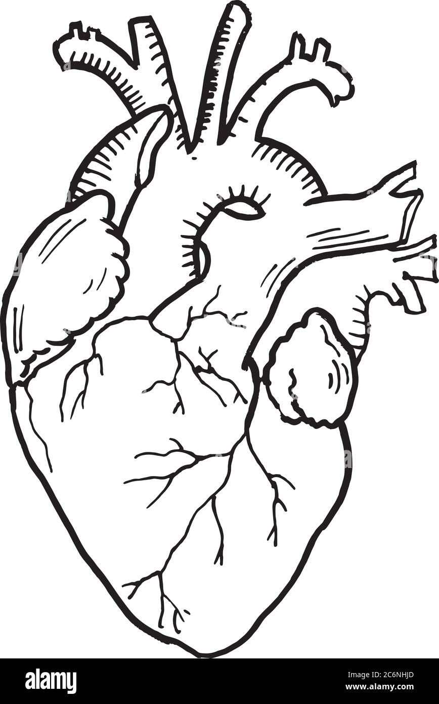 Contour Vector Outline Drawing Of Human Heart Organ Medical Design Editable Template Stock Vector Image U0026 Art Alamy