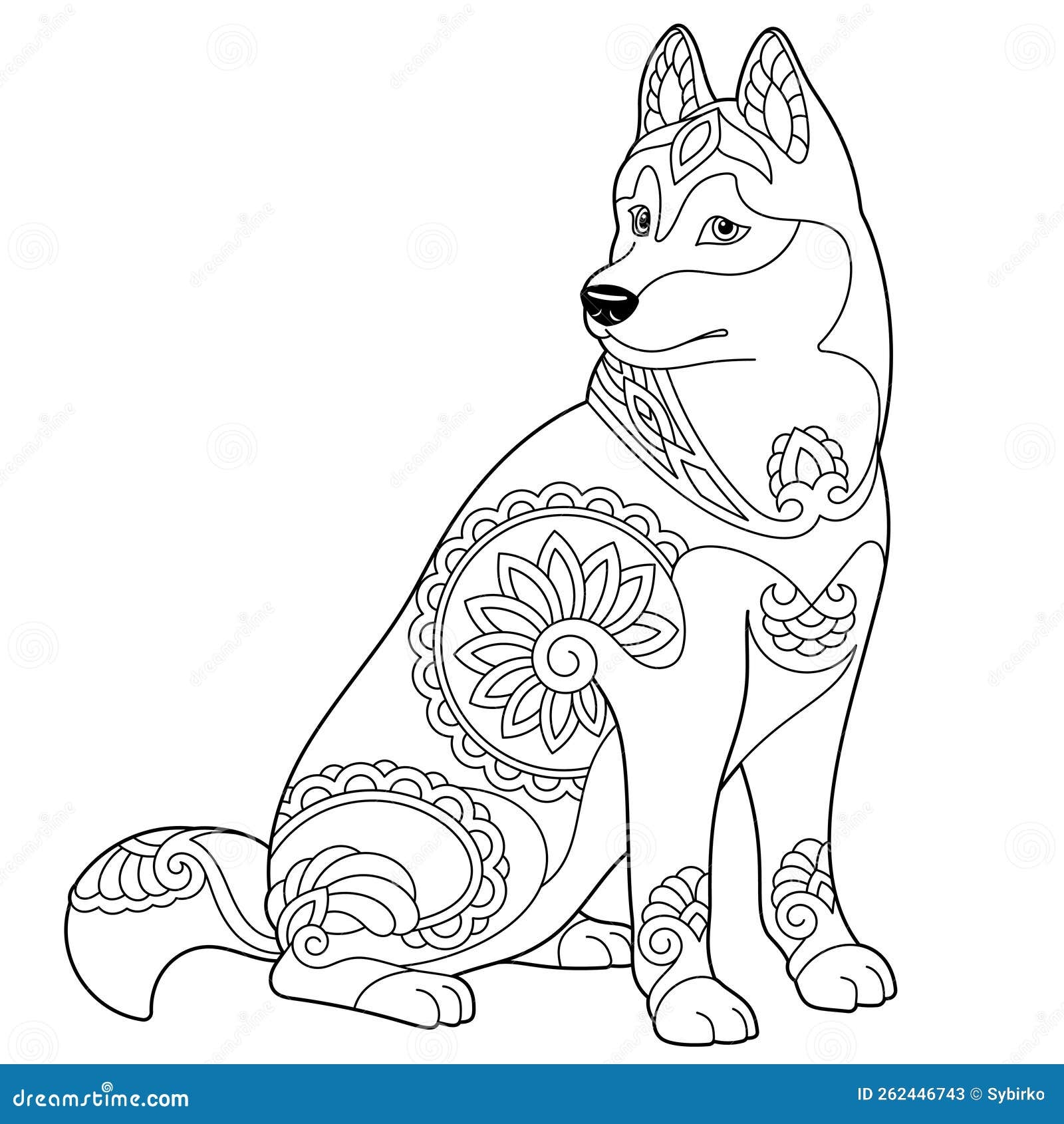 Husky Dog Coloring Page Stock Vector Illustration Of Husky 262446743