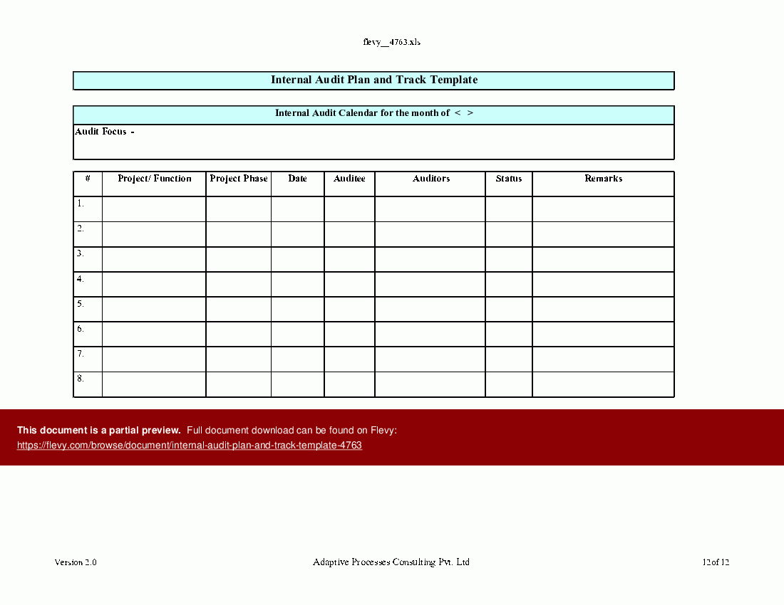 Download and Print internal audit plan template Listed below