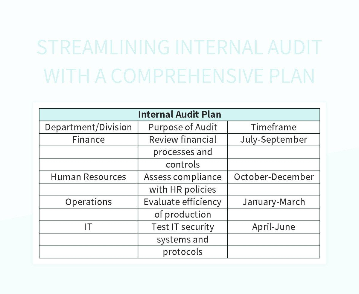 Streamlining Internal Audit With A Comprehensive Plan Excel Template And Google Sheets File For Free Download Slidesdocs