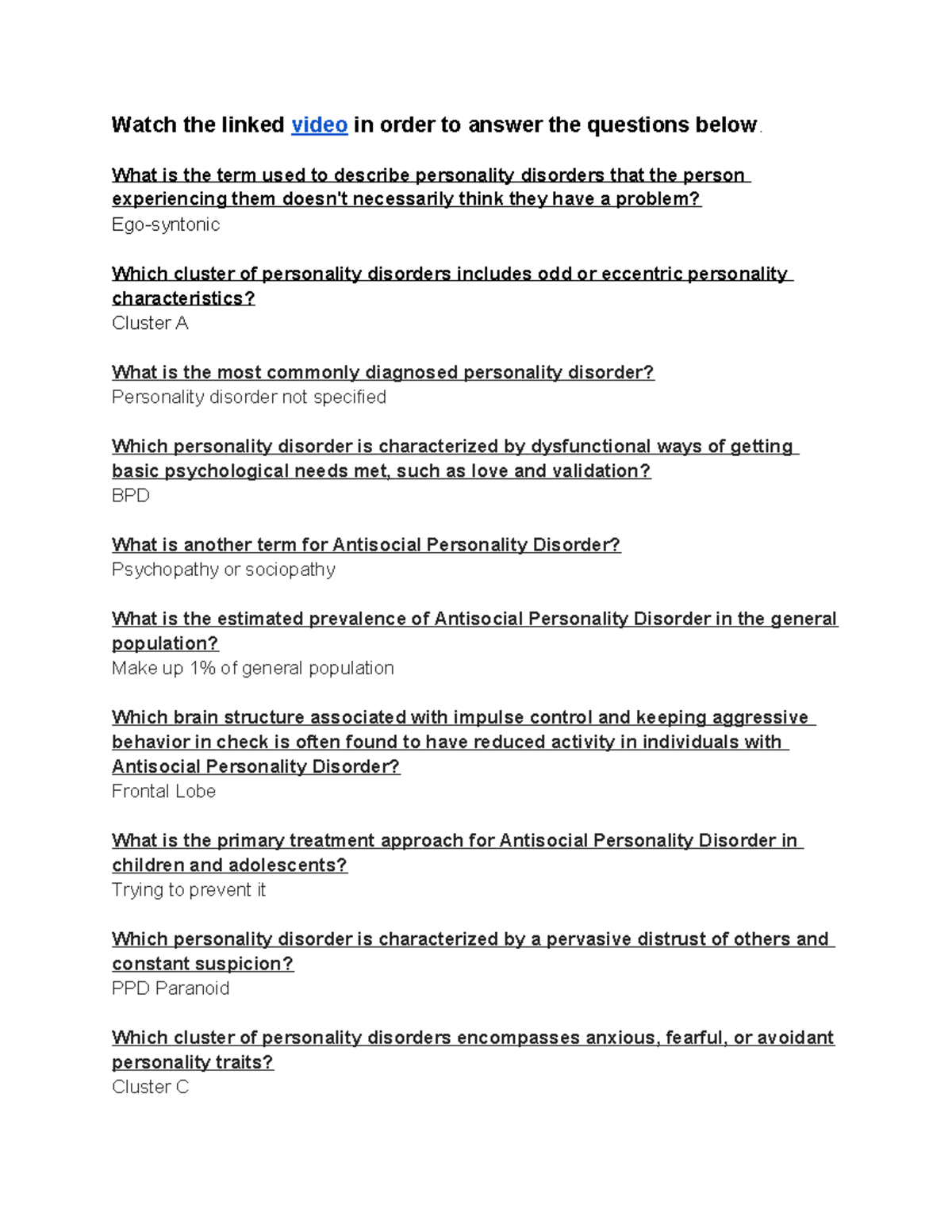 Crash Course Personality Disorders Worksheet Watch The Linked