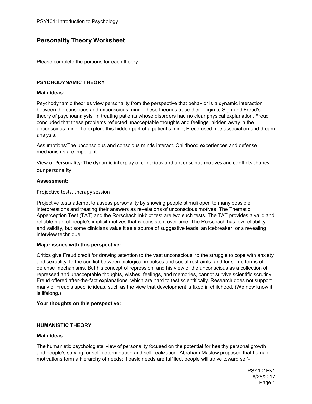Download and Print intro to psychology personality disorder worksheet Listed below