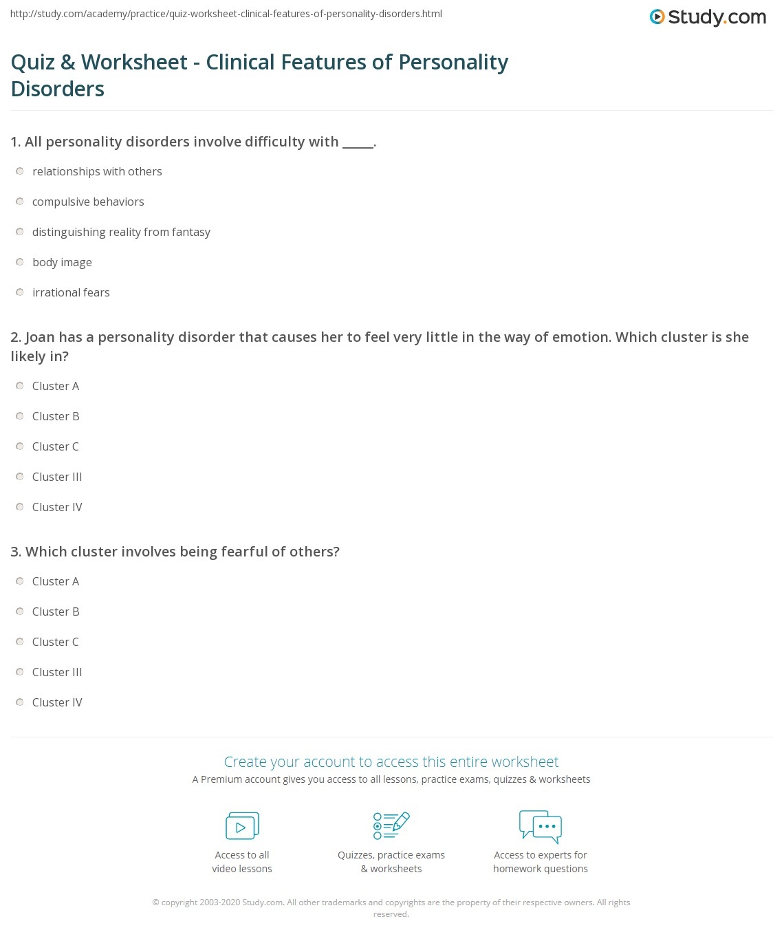 Quiz U0026 Worksheet Clinical Features Of Personality Disorders