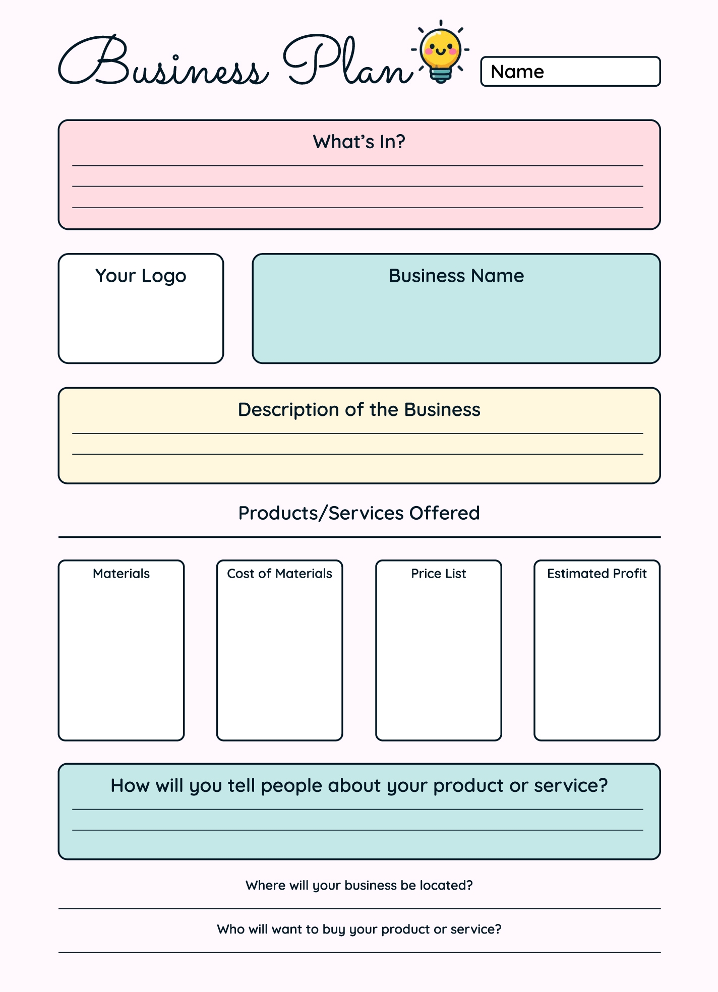 By using this template, your child will have a clear roadmap for turning their business idea into a reality. Encourage them to be creative, think outside the box, and have fun with the process. Who knows, they might just become the next young entrepreneur!