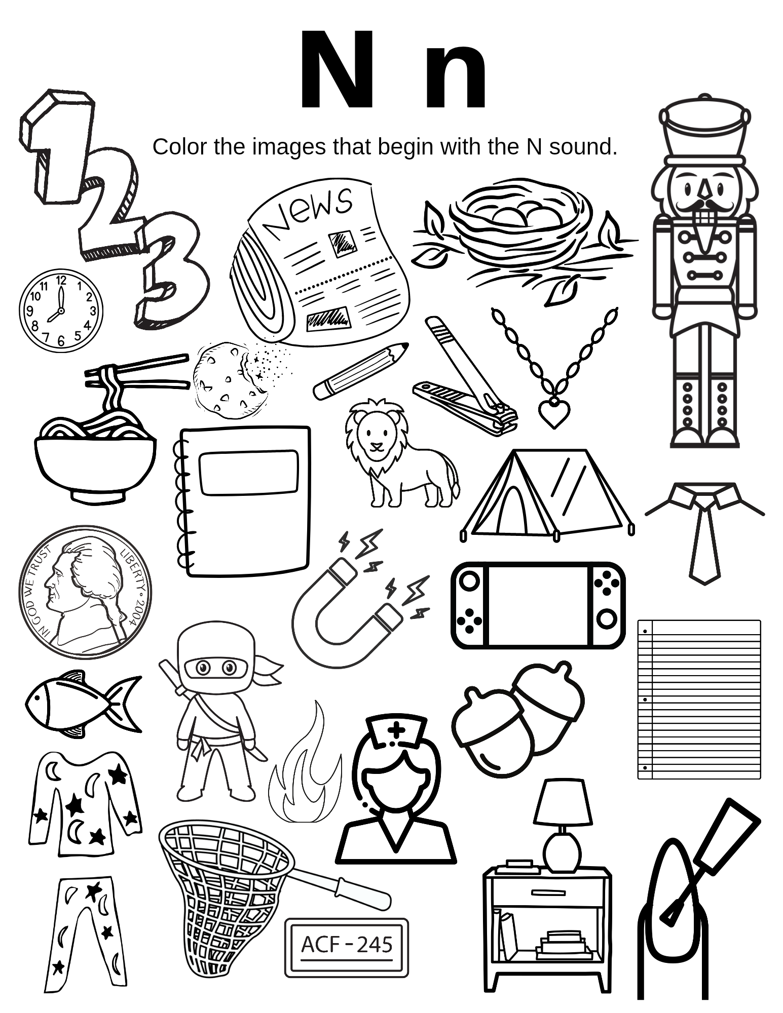 Letter N Pictures to Color