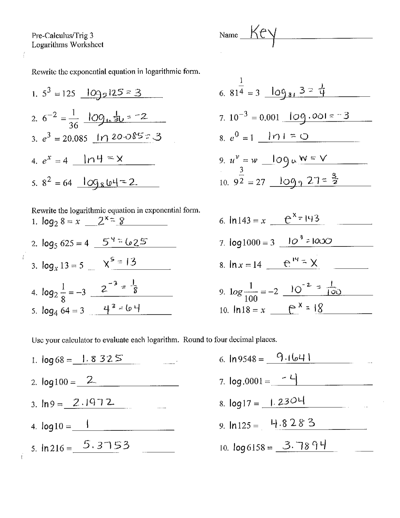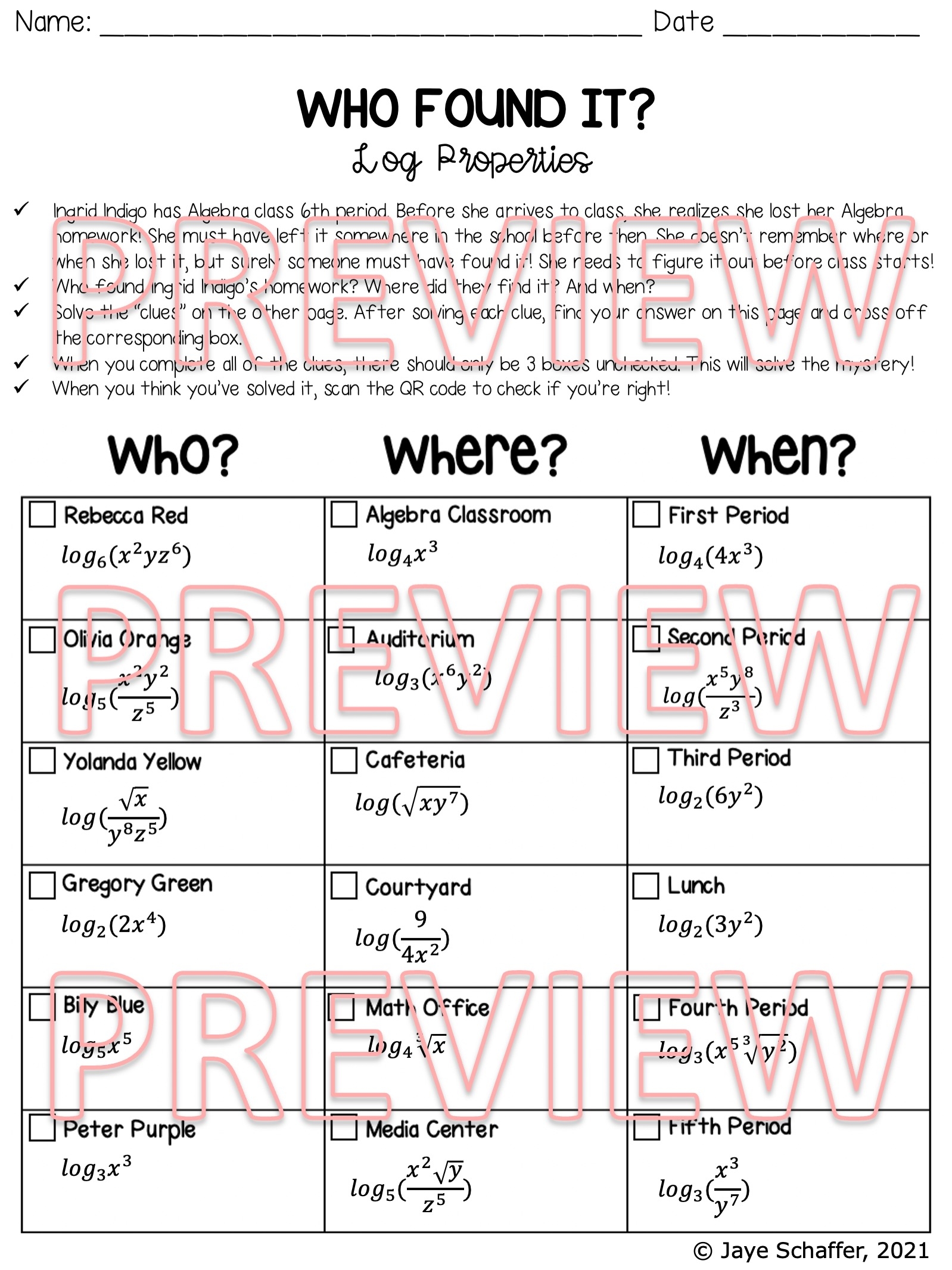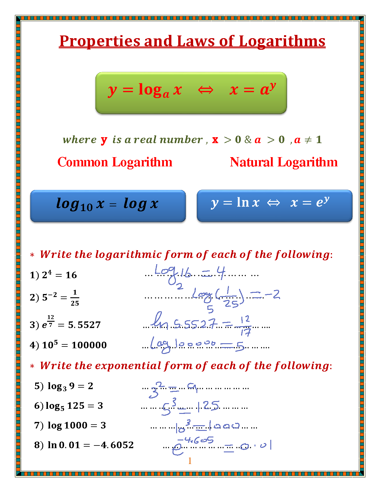 Log Properties Worksheet