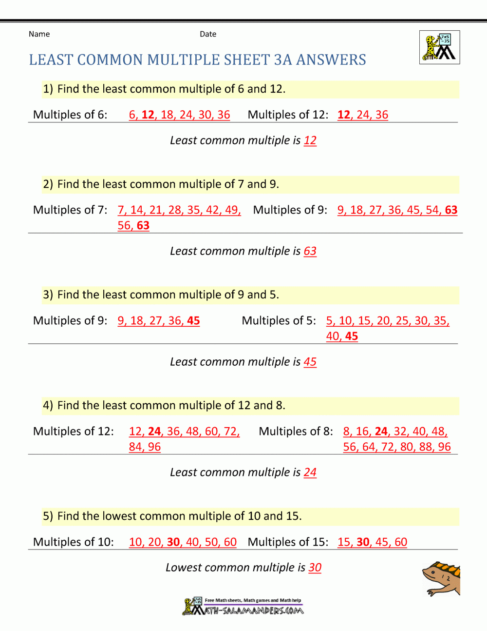 When it comes to learning about multiples and factors, students often encounter the concept of the lowest common multiple. This mathematical concept is essential in various calculations and problem-solving scenarios. To help students practice and reinforce their understanding of the lowest common multiple, teachers often provide worksheets that offer a range of exercises and problems to solve.