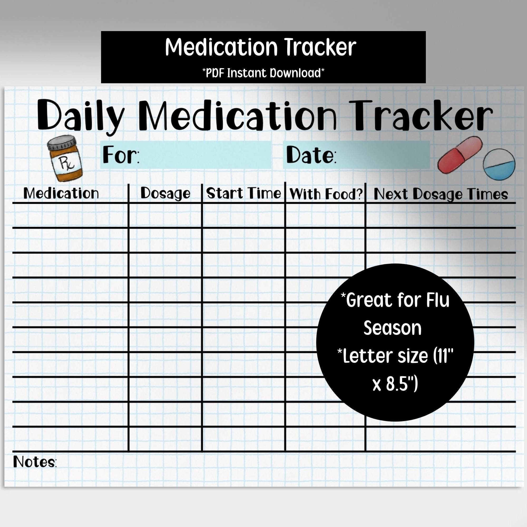 Medication Log Printable Medication Tracker Medication Chart Daily Medication Log Report Schedule Medication List Template Planner PDF